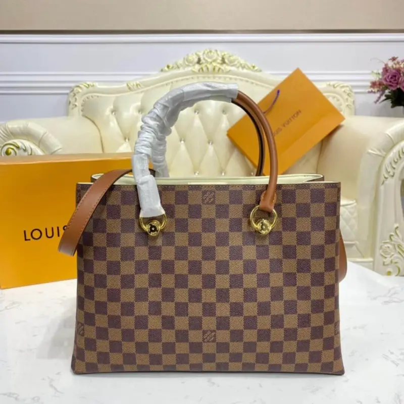 Effortlessly blending sophistication with everyday functionality, this satchel is the perfect accessory for transitioning from professional settings to casual outings. Its structured silhouette is crafted from a durable coated canvas, featuring a timeless checkerboard pattern, and is elegantly accented with details made from rich, grained leather. The thoughtful design ensures both style and practicality are always at hand.