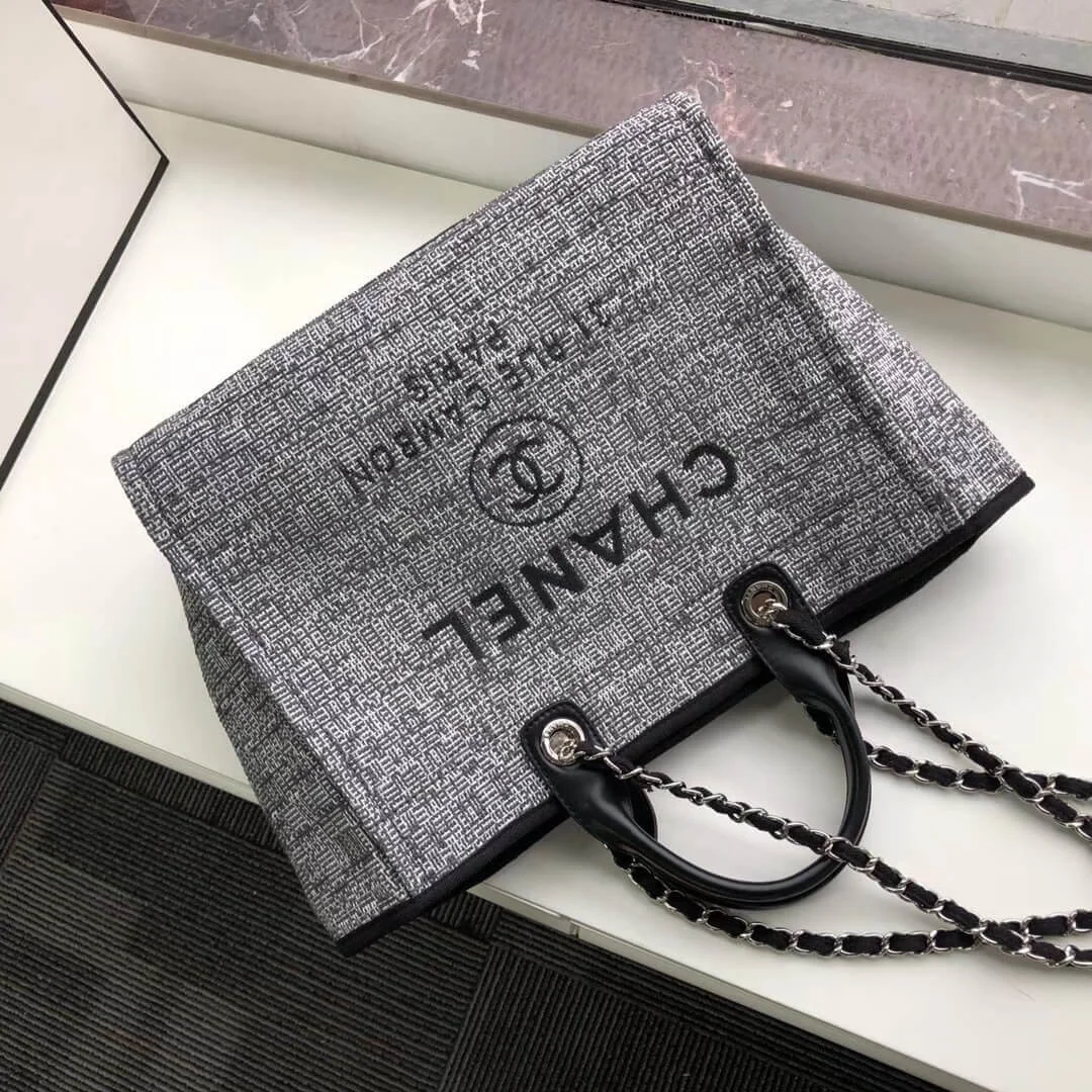 Deauville Large Shopping Tote Bag in Charcoal Jacquard A66941