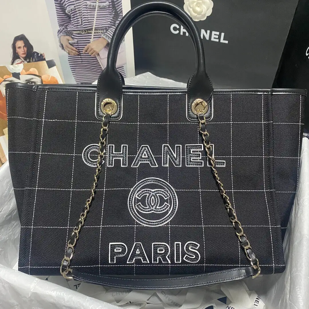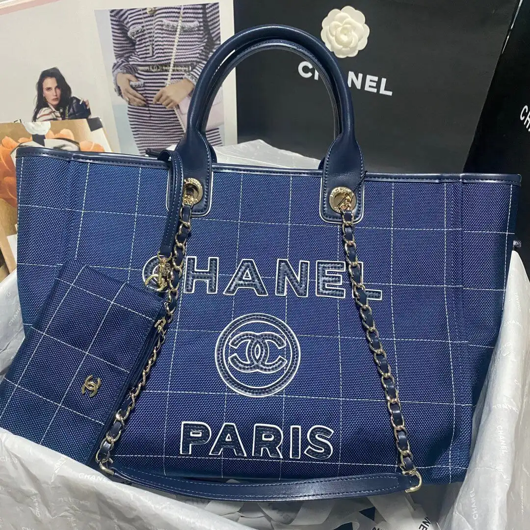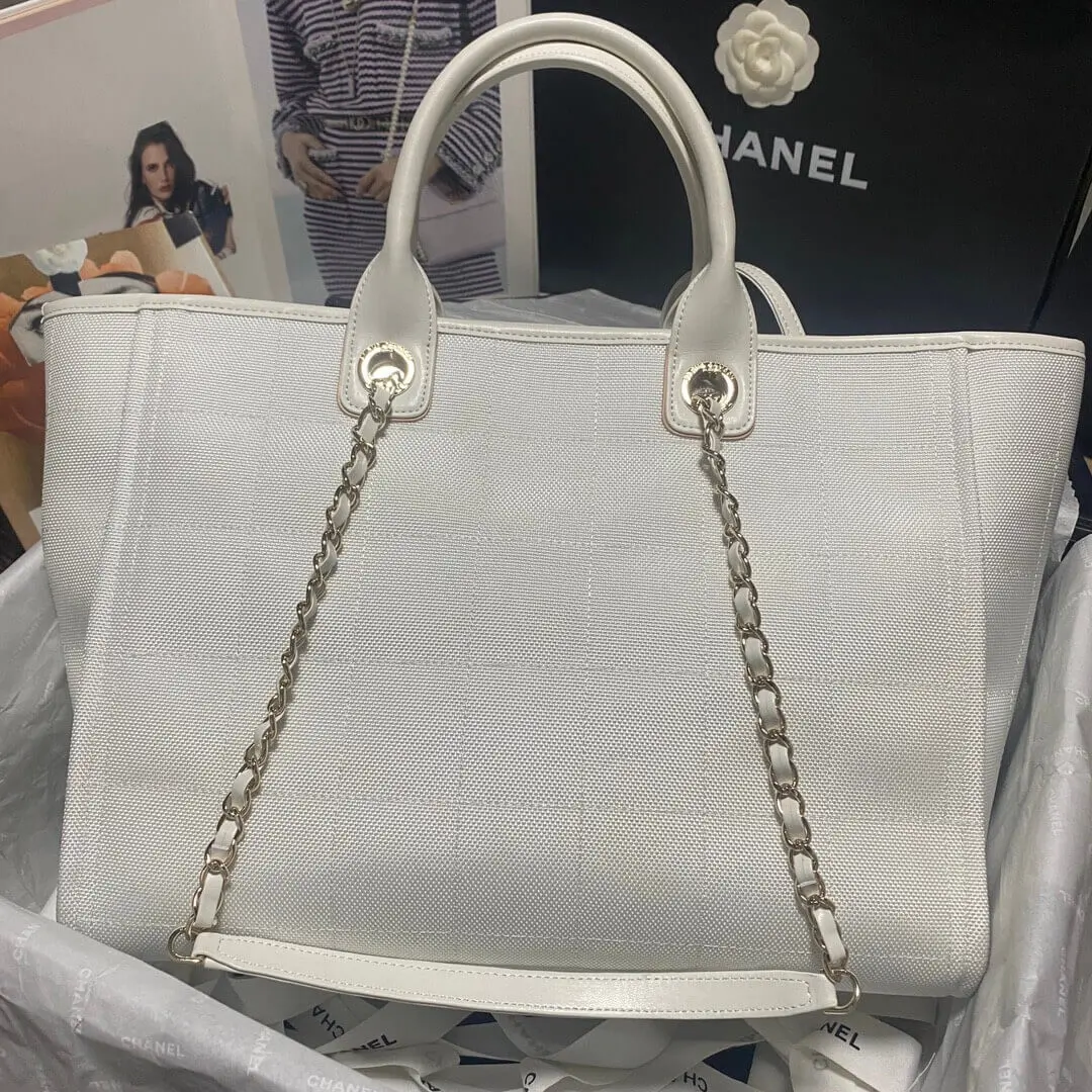 Deauville Large Shopping Tote in Cotton and Calfskin Mix AS93786