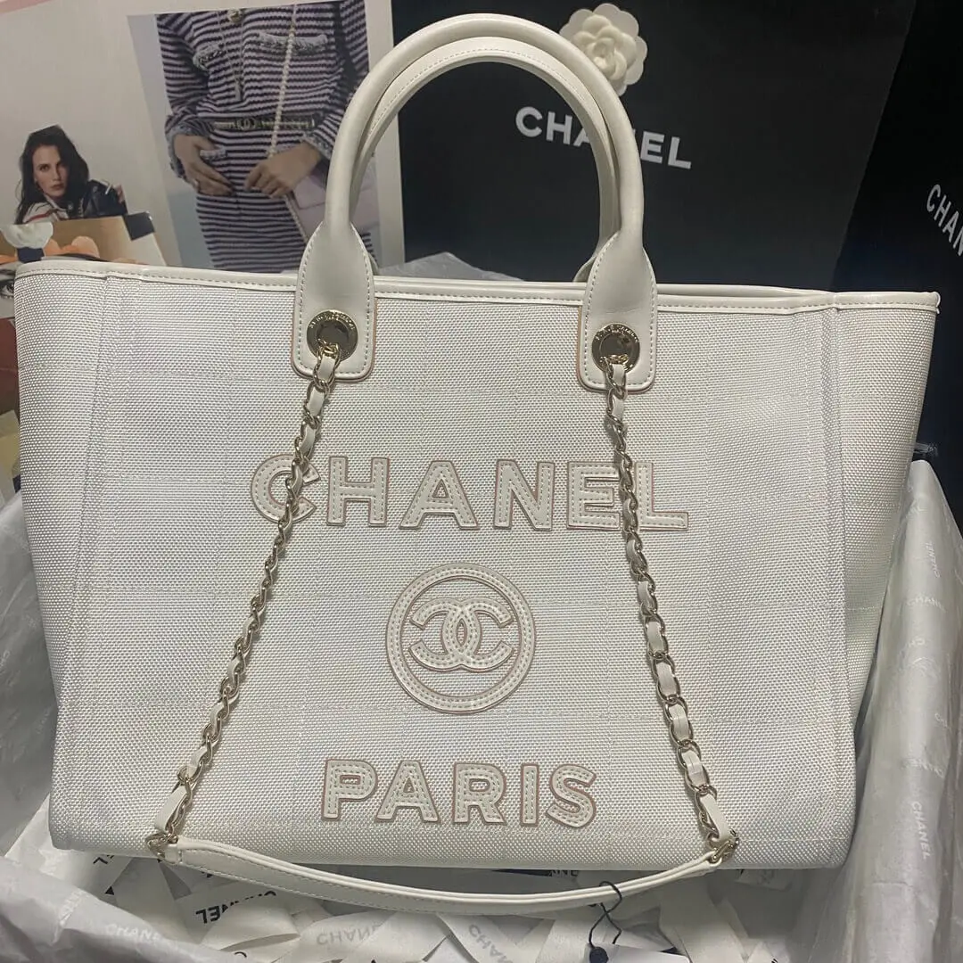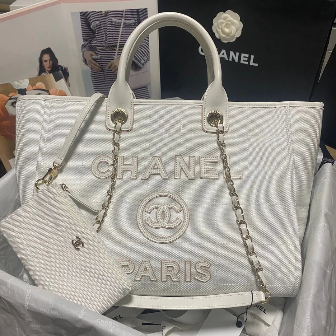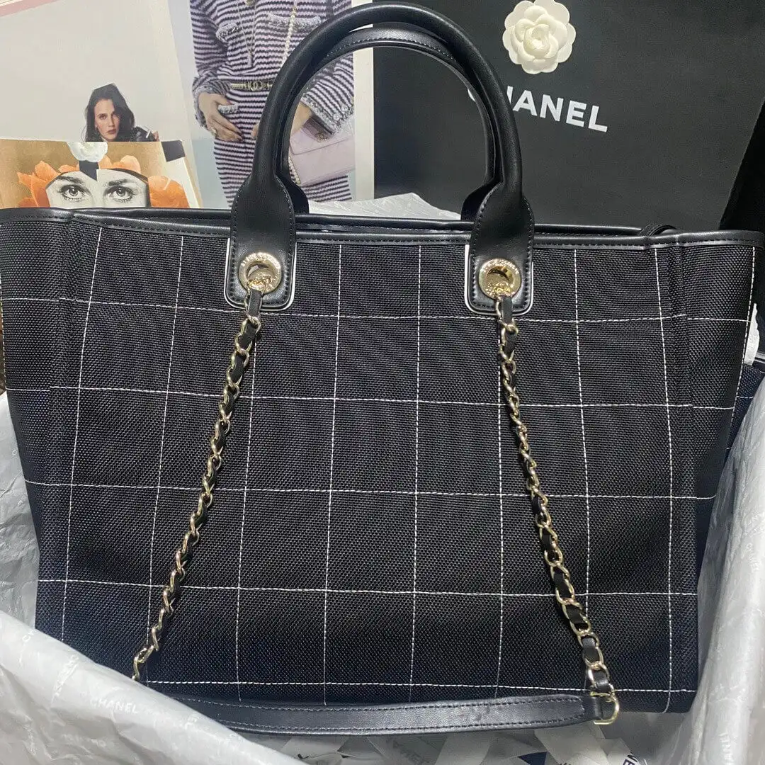 Deauville Large Shopping Tote in Cotton and Calfskin Mix AS93786