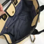 Discover a perfect blend of relaxed sophistication and high-end craftsmanship with this large shopping tote. The main body features a distinctively textured woven straw, offering a unique tactile experience and a breezy, elegant look. This is beautifully contrasted with smooth, durable calfskin leather trim, which adds structure and a touch of classic luxury to the design, making it both a stylish and practical choice.