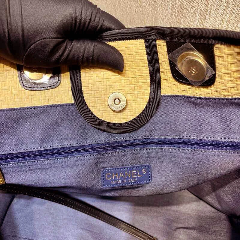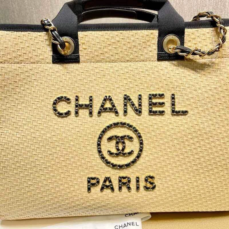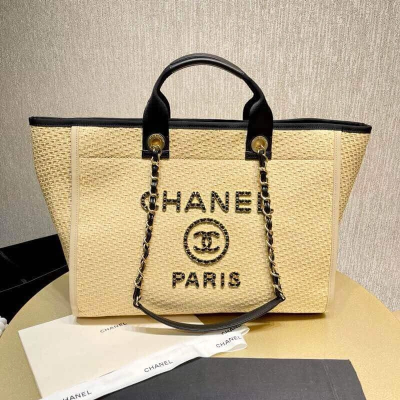 Deauville Woven Chain Strap Large Leather Shopping Tote A66941
