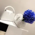 Add a touch of playful elegance to any room with this uniquely shaped flower vase. Inspired by the silhouette of an iconic handbag, this piece is designed to be a conversation starter, blending high-fashion aesthetics with functional home decor. Its detailed craftsmanship and classic form make it a perfect centerpiece or a sophisticated accent for a shelf or entryway table.