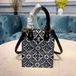Discover your new favorite accessory with this beautifully crafted mini tote bag. Made from a durable jacquard denim featuring a classic monogram pattern, this compact bag offers a stylish solution for carrying your daily essentials. The design is complemented by natural cowhide leather trim, creating a timeless and sophisticated look suitable for any occasion.