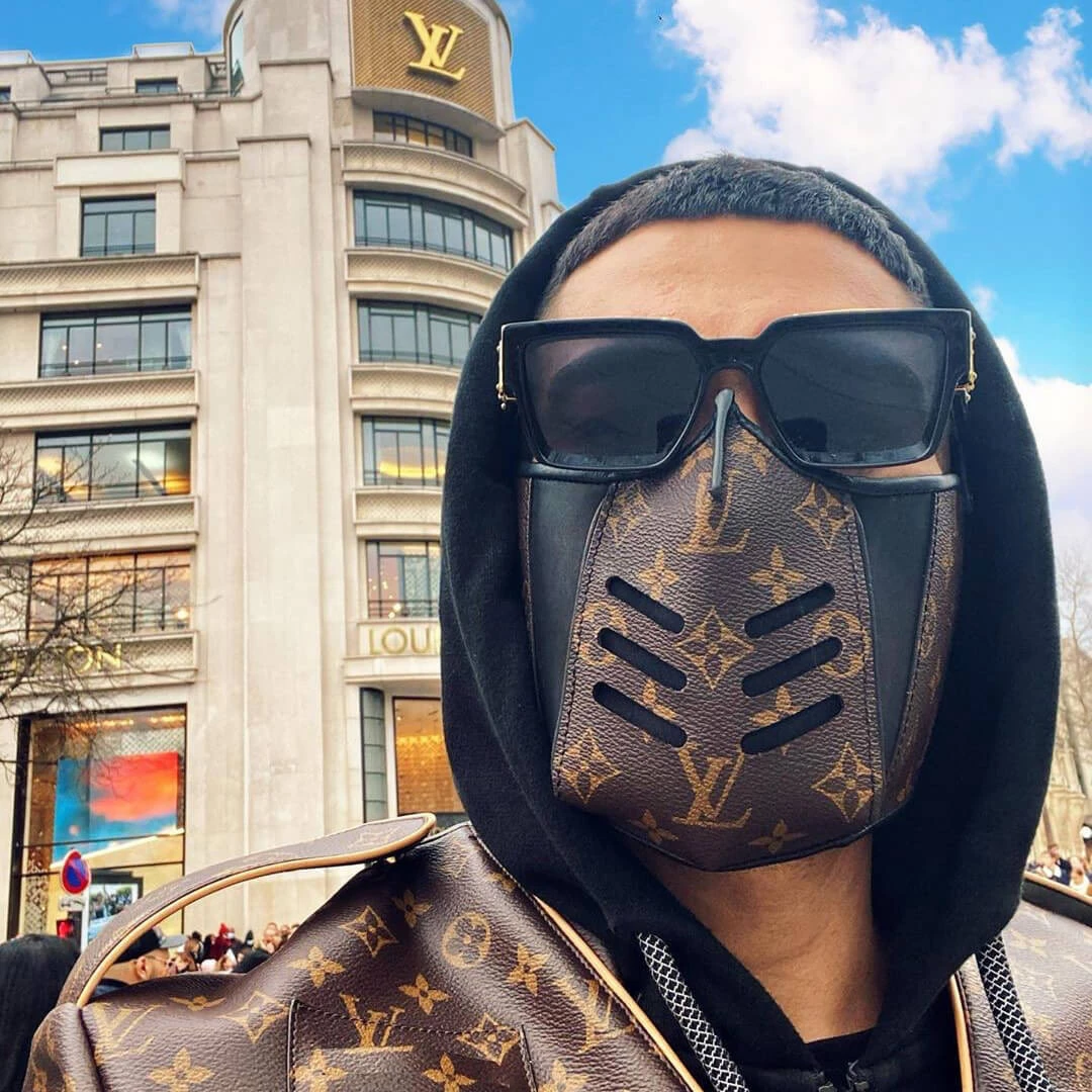 Designer-Inspired Monogram Print Brown Leather Fashion Face Mask