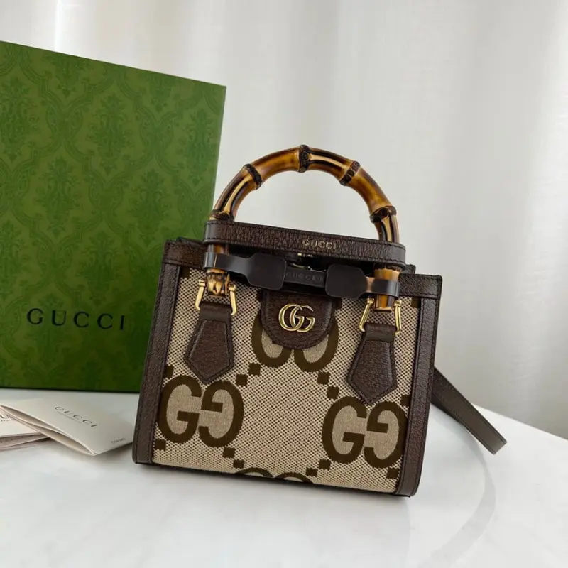 Diana Jumbo GG Monogram Print Mini Tote Bag Brown 655661