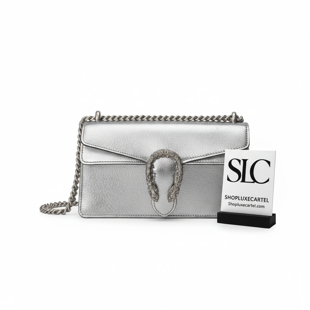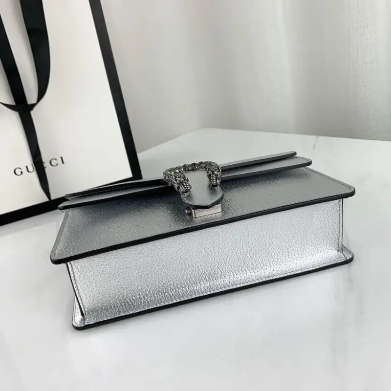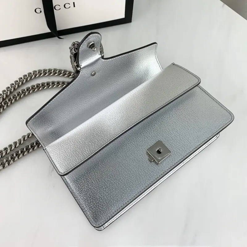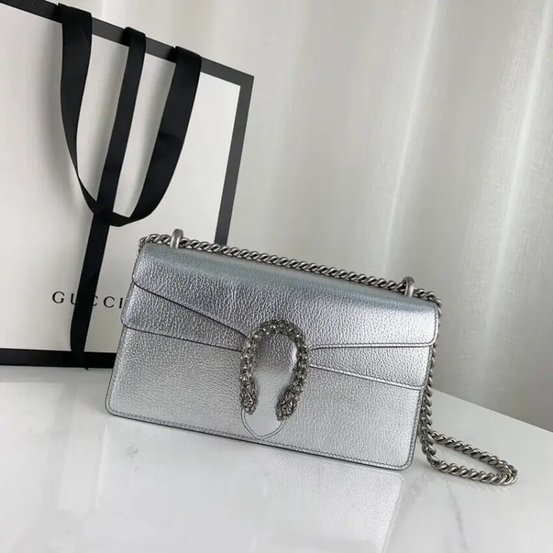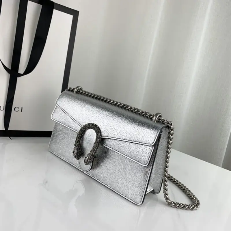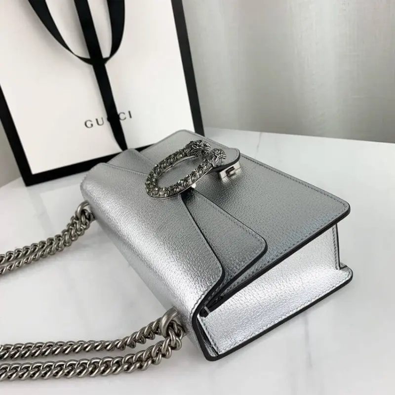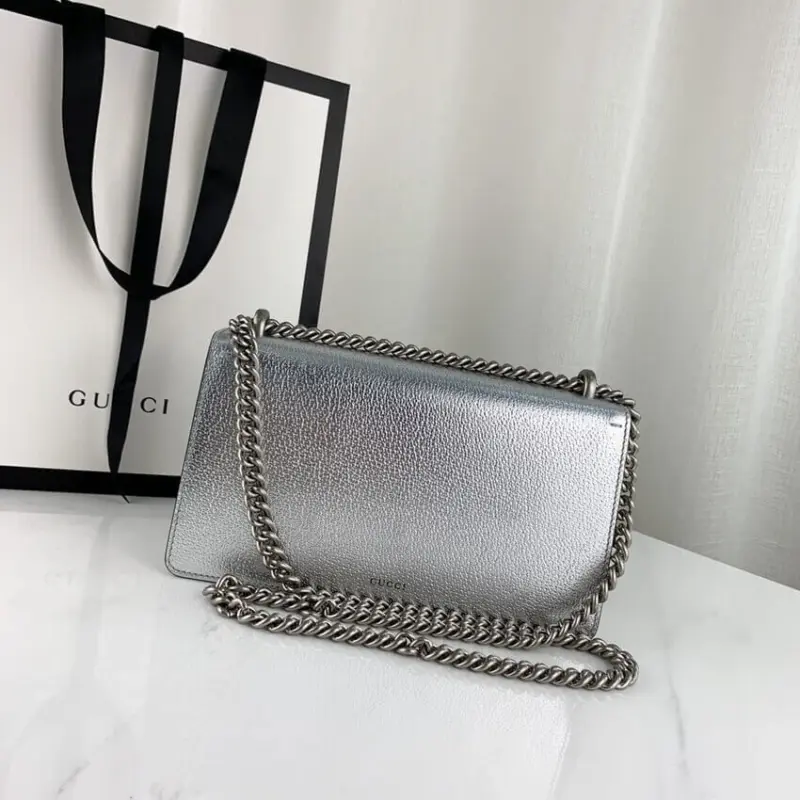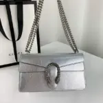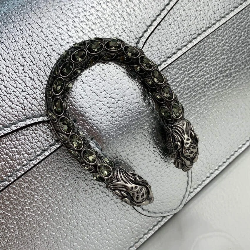 Dionysus Chain Strap Shoulder Bag in Silver Lame Leather 499623