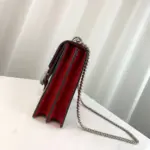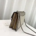 Functionality is key, with a sliding chain strap that effortlessly converts from a shoulder bag to a top handle, adapting to any occasion. The well-organized interior, lined with soft suede, includes multiple pockets to keep your essentials secure and accessible.