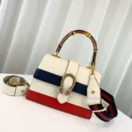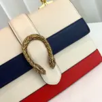 Dionysus Medium Top Handle Bag with Tricolor Stripe 448075 White Blue Red