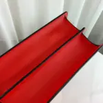 Designed for versatility, this bag features a unique bamboo top handle for a classic handheld look. It also includes a detachable shoulder strap adorned with a signature red and blue stripe, allowing it to be worn comfortably over the shoulder. The well-organized interior, lined with a cotton linen blend, ensures your essentials are always within reach.