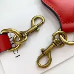 • Detachable shoulder strap with a blue and red stripe detail (20″ drop)