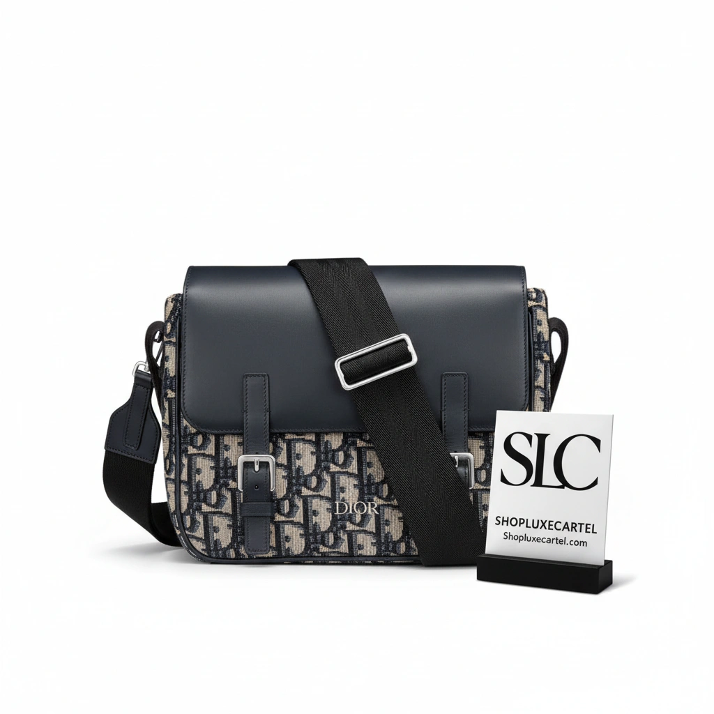 Inspired by the timeless silhouette of a traditional satchel, this sophisticated messenger bag offers both style and practicality. It is meticulously crafted from a durable monogram canvas, beautifully contrasted with a smooth calfskin leather flap. A polished metallic signature on the front adds a touch of refined hardware to the design.