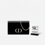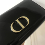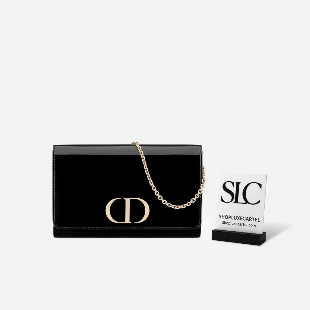 Elegant 30 Montaigne Black Patent Leather Wallet On Chain S2059