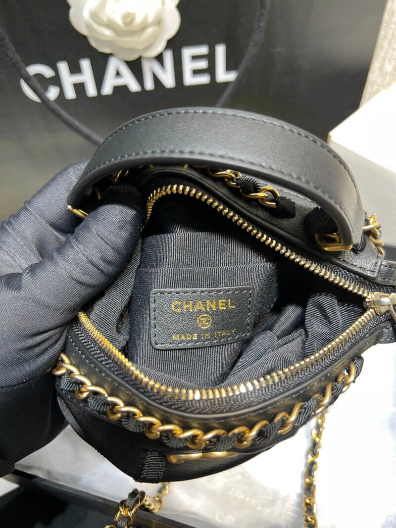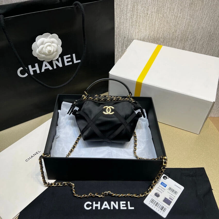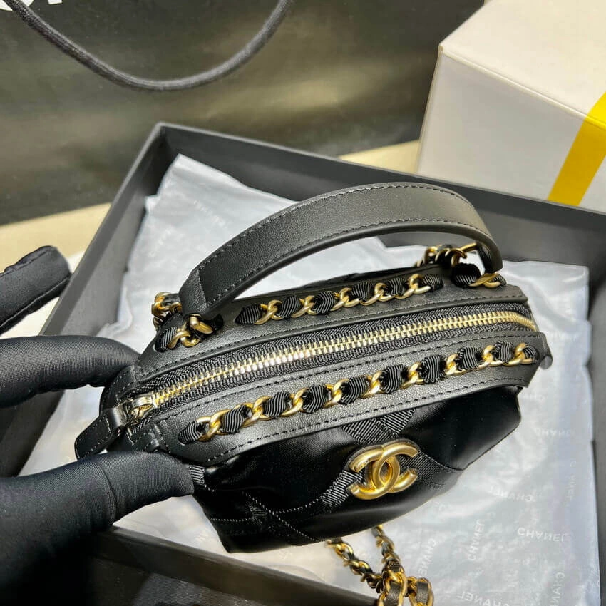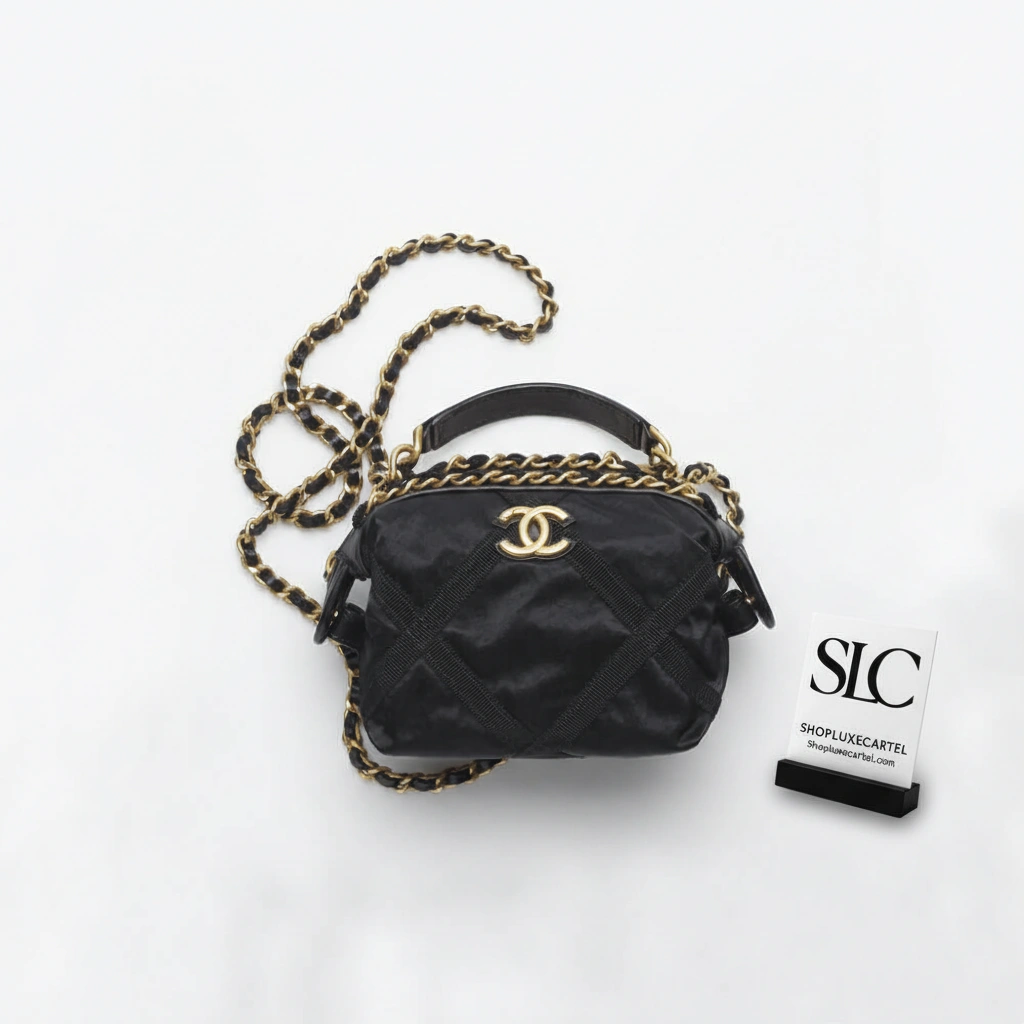 Elegant Quilted Chain Clutch in Black Nylon Grosgrain AP2669