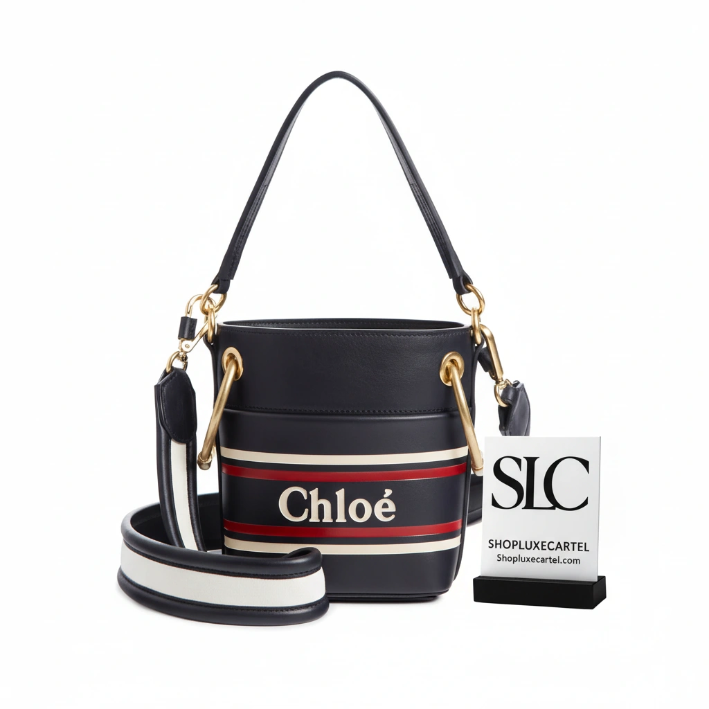 Discover a modern classic with this beautifully crafted bucket bag, designed for both style and versatility. Made from smooth, high-quality leather, this bag showcases a contemporary silhouette accented with distinctive, oversized ring hardware. Its structured base with protective bumper studs ensures durability, while the extended canvas lining with a secure drawstring closure keeps your belongings safe.