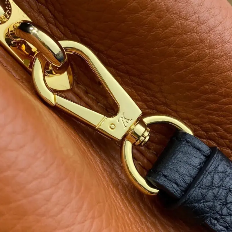 Designed for both style and practicality, this handbag can be carried in two ways: with the flap tucked inside for a sleek look or worn outside for a more traditional appearance. The thoughtfully compartmented interior includes a zipped pocket to keep valuables secure, while a snap hook ensures your belongings are safe. Four protective metal studs on the base preserve the fine leather, ensuring this elegant accessory remains a favorite for years to come.