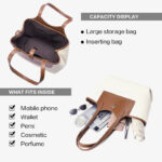 With its sophisticated two-tone design, blending durable canvas with rich, textured faux leather, this bag elevates any outfit. The structured silhouette ensures it stands elegantly on its own, while the spacious interior is thoughtfully designed to keep you organized on the go.