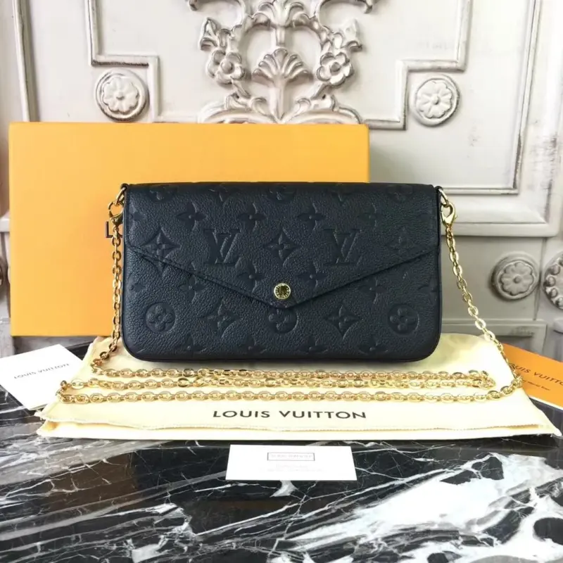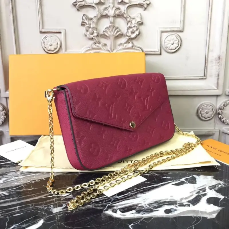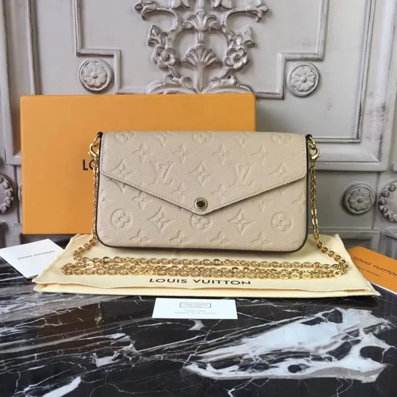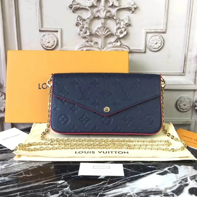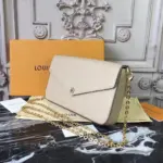 Experience unparalleled versatility with this exquisitely designed chain clutch, crafted for seamless transitions from day to night. Made from supple grained leather featuring a sophisticated embossed pattern, this piece can be worn as a crossbody, carried as a shoulder bag, or held as an elegant clutch. Its classic envelope-style silhouette offers a timeless appeal that complements any wardrobe.