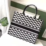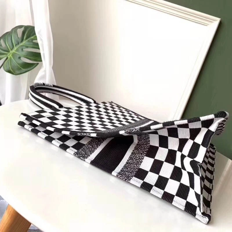 Showcasing exceptional craftsmanship, this carryall tote is structured from durable canvas fully embroidered with an intricate, two-tone geometric motif. Its spacious, open-top design and sturdy construction make it an essential and stylish companion for everything from daily errands to weekend getaways.