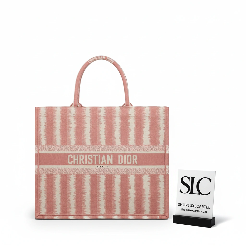 This beautifully crafted shopper tote has become a staple of modern, sophisticated style. Designed to carry all your daily essentials, its silhouette offers a new take on a classic striped motif, featuring a fully embroidered, heathered-effect pink pattern for a contemporary look. This carryall epitomizes fine craftsmanship and elegant design.