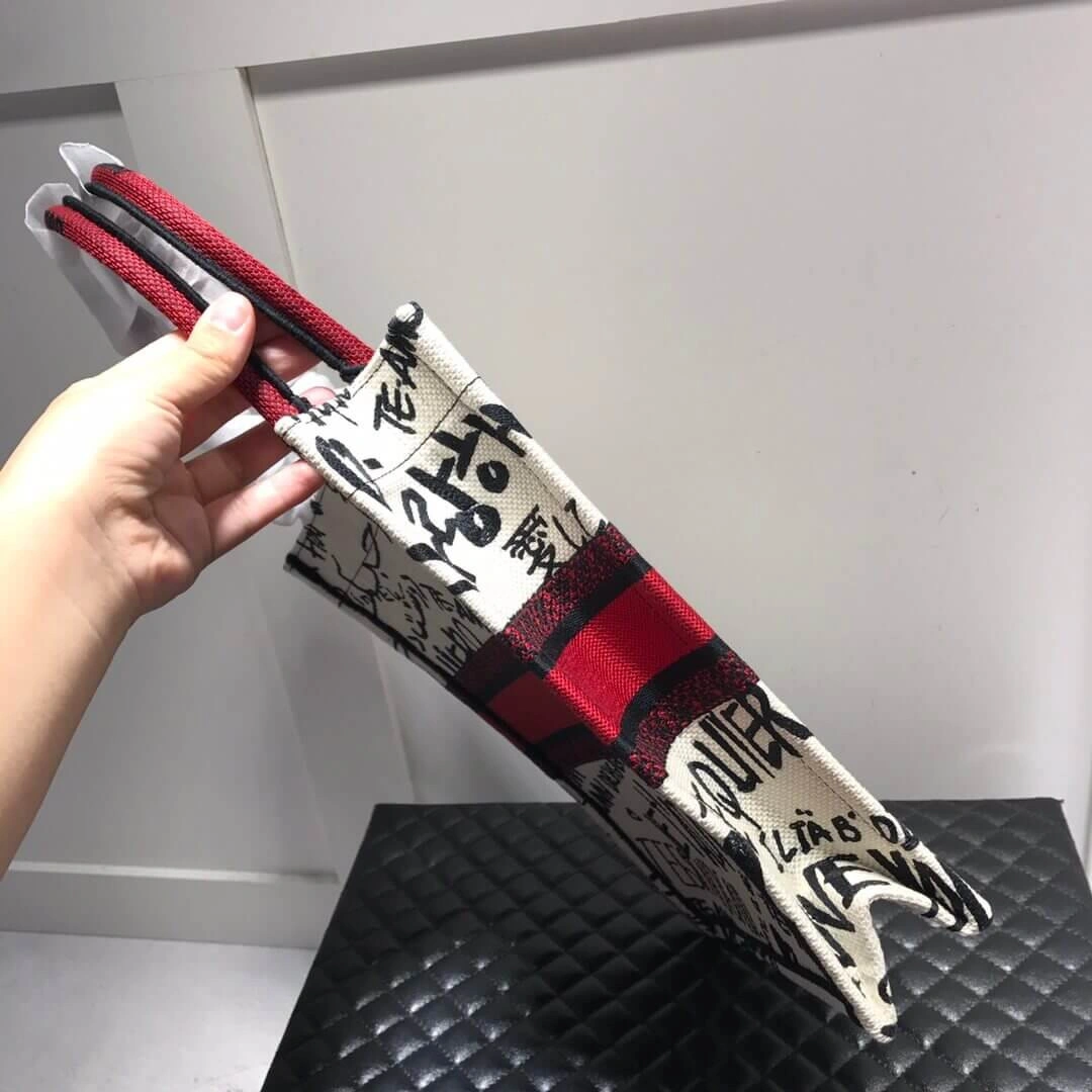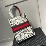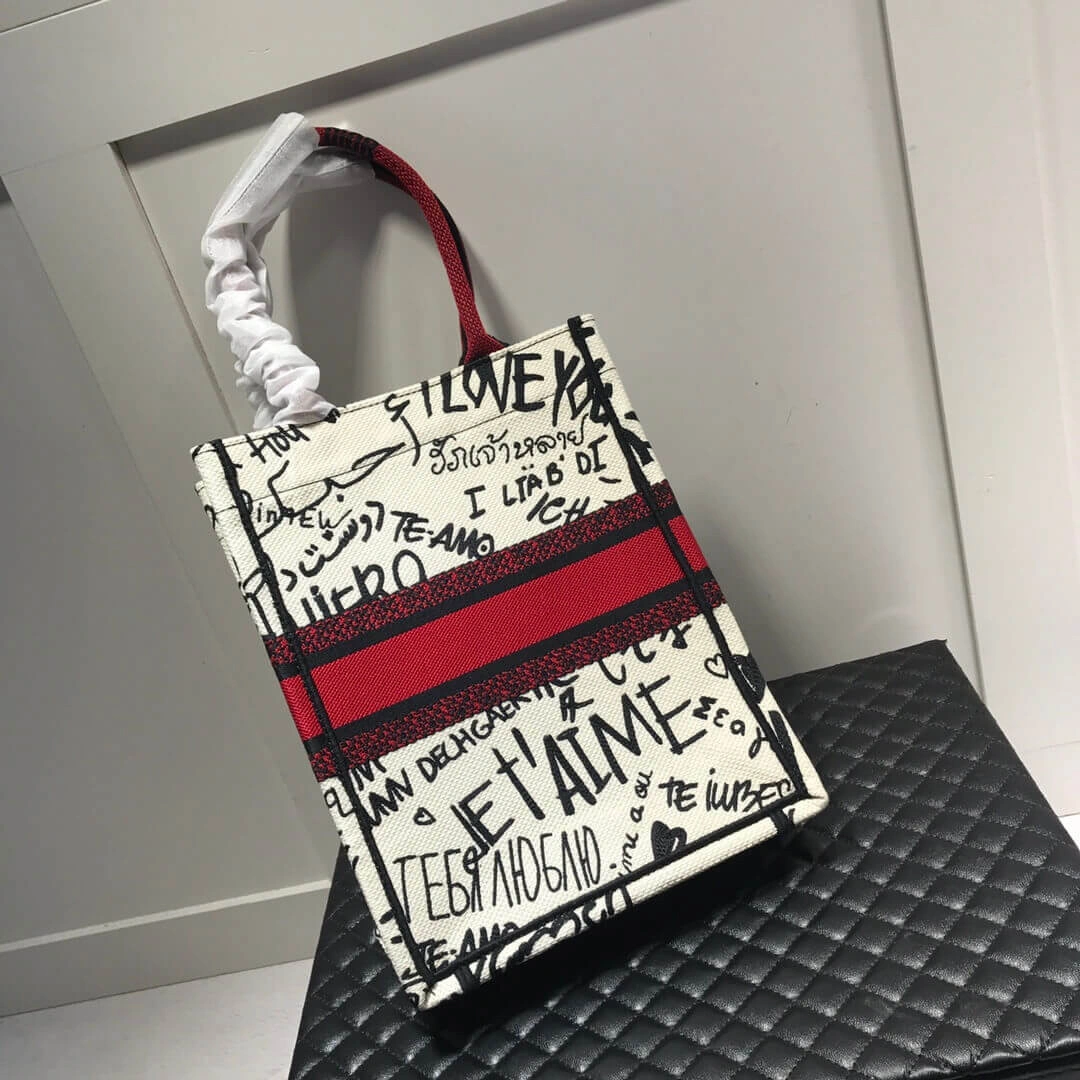 Embroidered Graffiti Print Vertical Book Style Tote Bag M1272