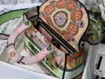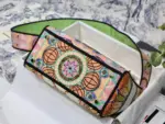 This exquisite top handle bag combines timeless elegance with contemporary artistry. Fully adorned with a vibrant, multicolor graphic embroidery, this piece showcases a unique patchwork-style design, with a different captivating color featured on each of its four sides. The intricate pattern is inspired by the brilliant spectacle of light festivals, creating a truly eye-catching and sophisticated accessory.