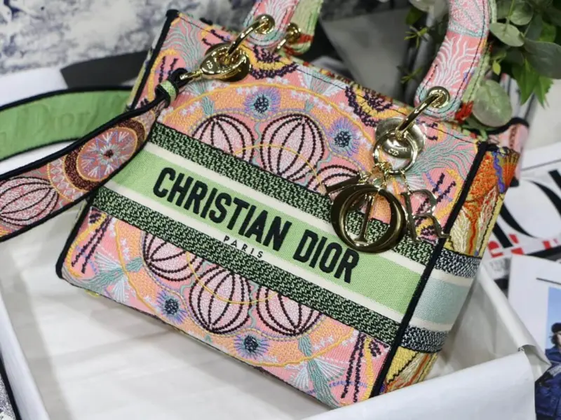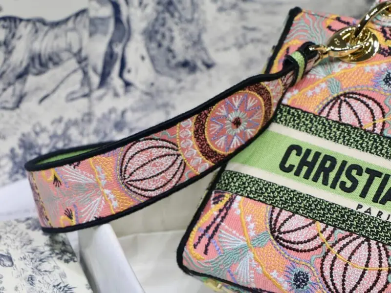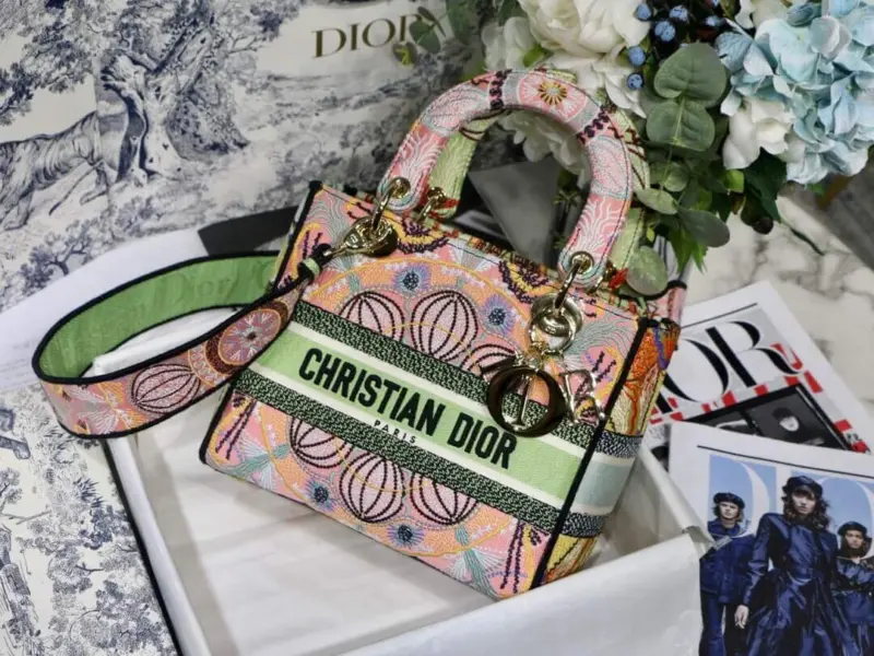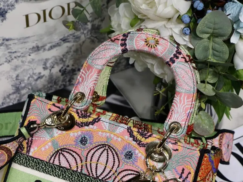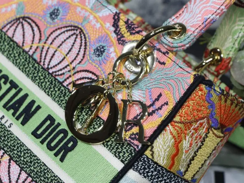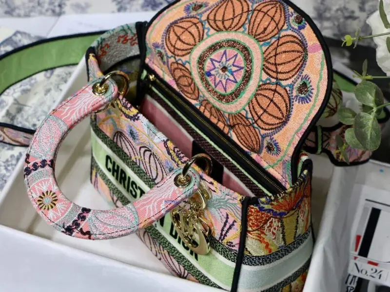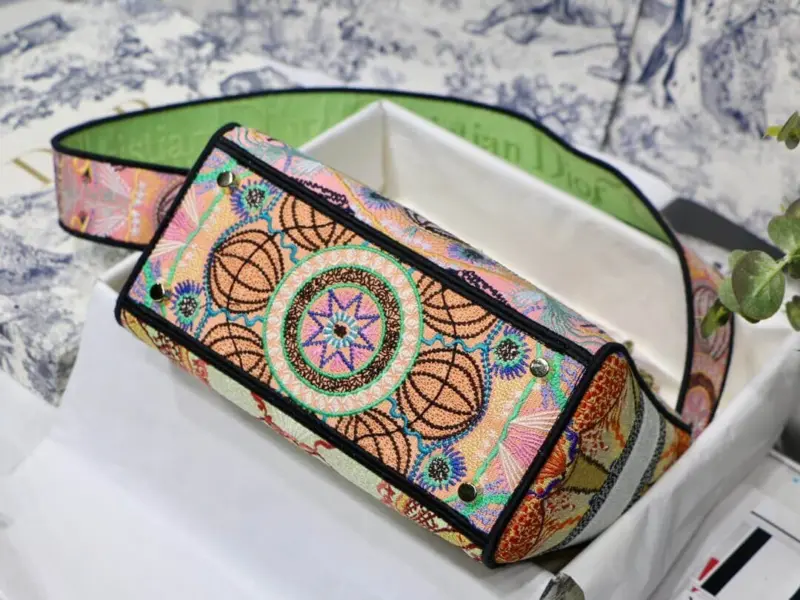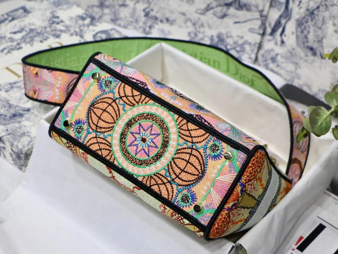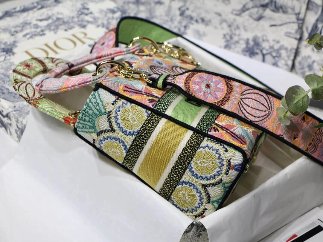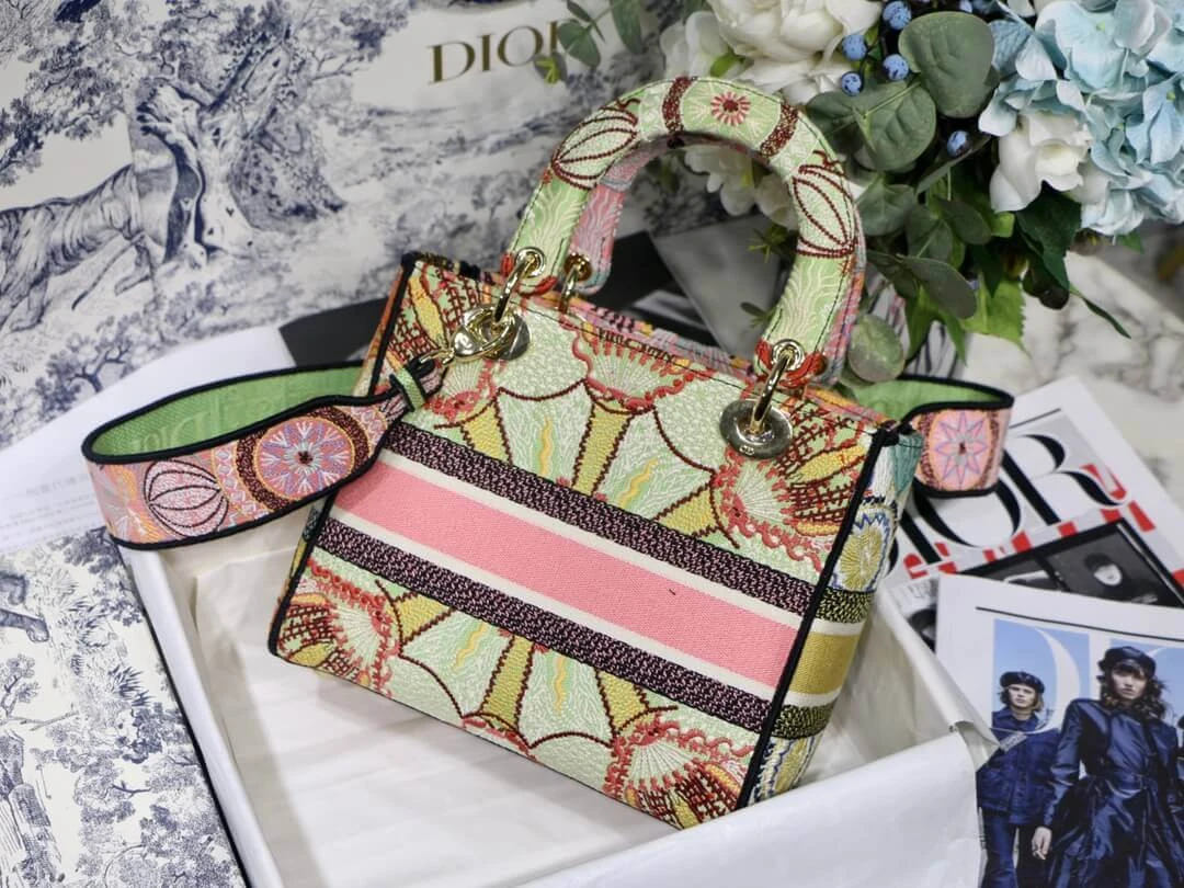 Embroidered Medium Lady D-Lite Multicolor Top Handle Bag M0565