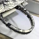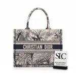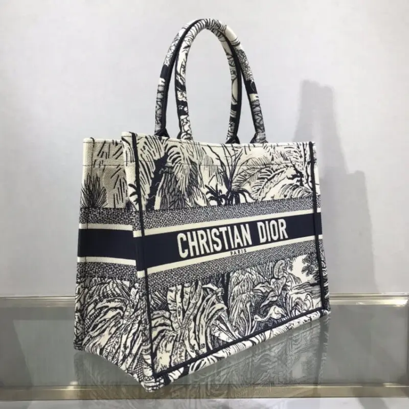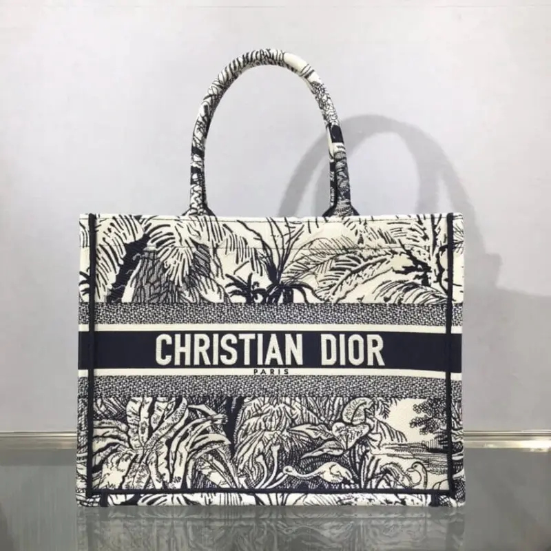 The front of the tote features a prominent and recognizable signature, adding a touch of classic appeal. Its versatile design allows it to be carried comfortably by hand or worn gracefully over the shoulder, making it the perfect accessory for any occasion.