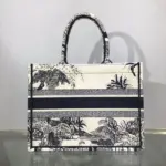 Embroidered Small Book Tote with Blue Toile de Jouy Palms M1296