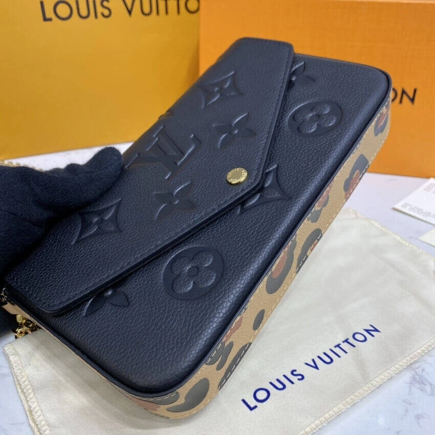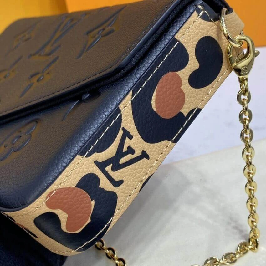 Experience unparalleled versatility with this beautifully crafted envelope-style pochette. Made from supple, embossed grained cowhide leather and accented with a chic animal-print trim, this piece is the epitome of sophisticated design. Its clever construction allows it to be carried as an elegant clutch or worn over the shoulder or cross-body using the detachable gold-tone chain.