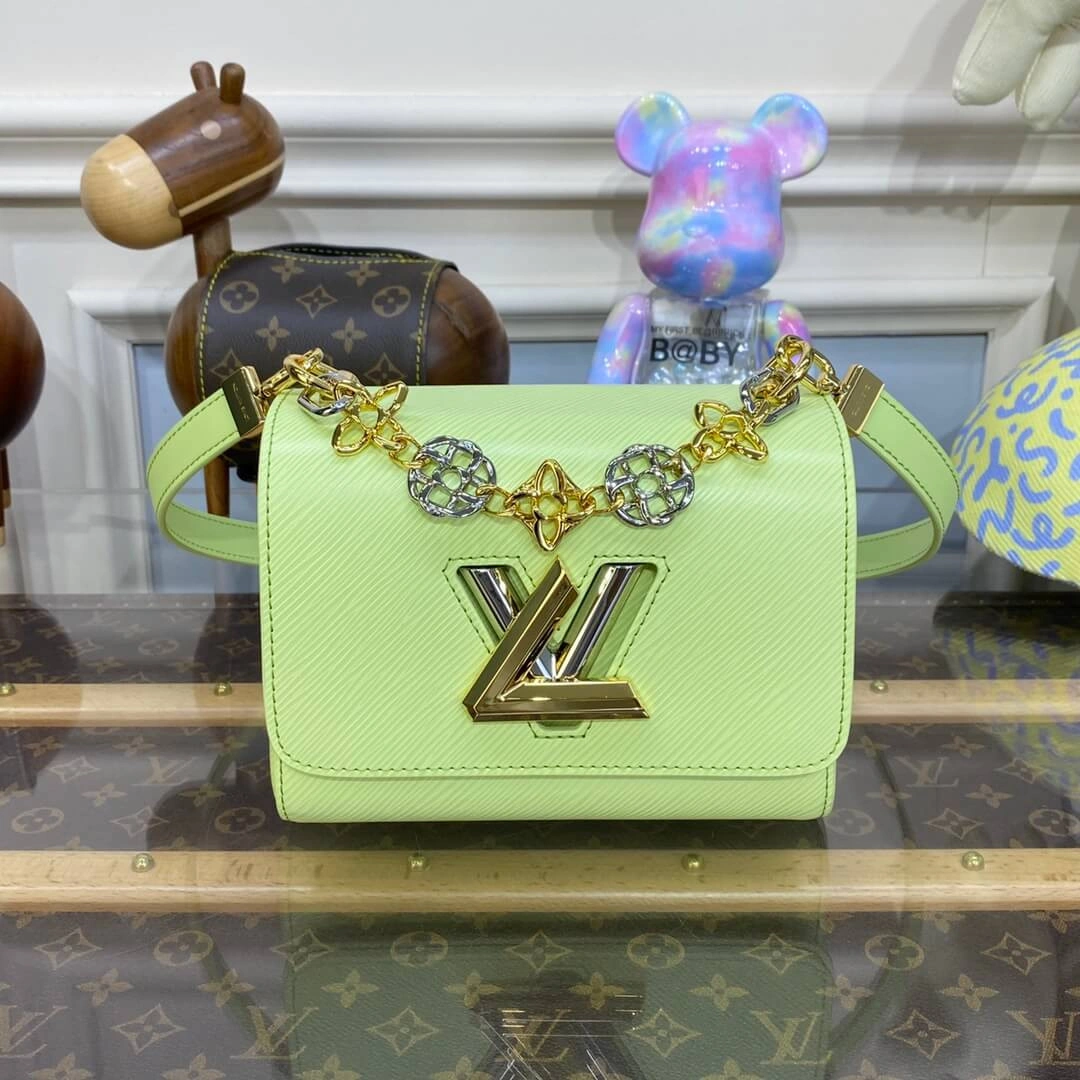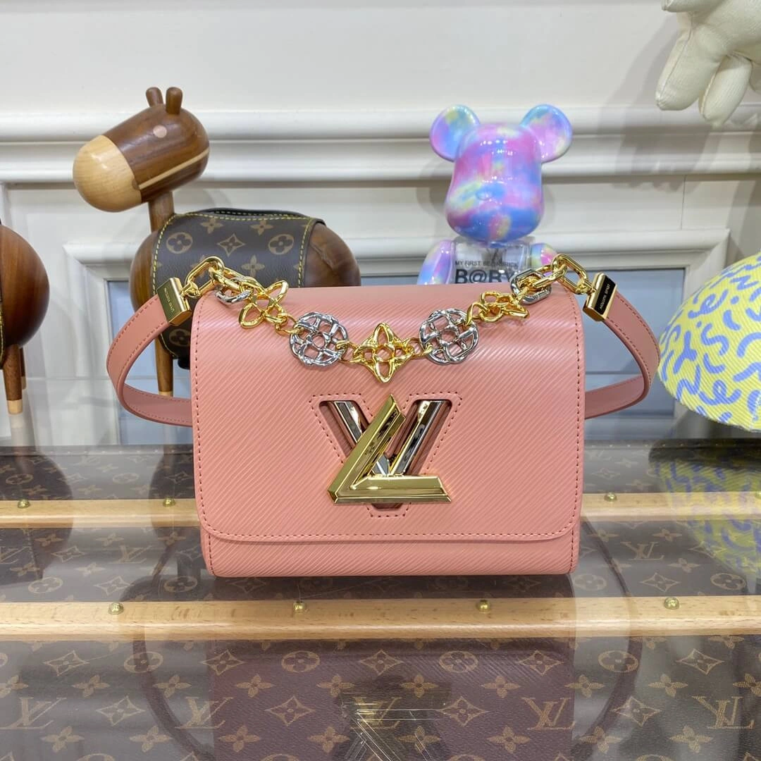 Epi Leather Twist PM Shoulder Bag with Monogram Flowers Chain
