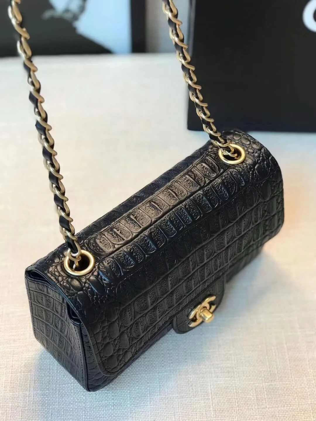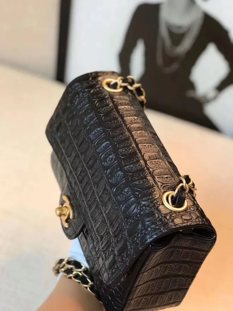 Experience the pinnacle of luxury with this impeccably crafted shoulder handbag, rendered in genuine alligator leather. The bag’s timeless flap silhouette is complemented by gleaming, polished gold-tone hardware, creating a look of classic elegance that transcends seasons. Its structured design and sophisticated aesthetic make it the perfect accessory for both daytime engagements and evening events.