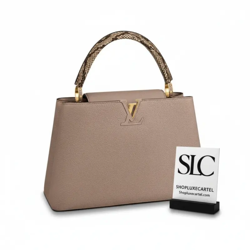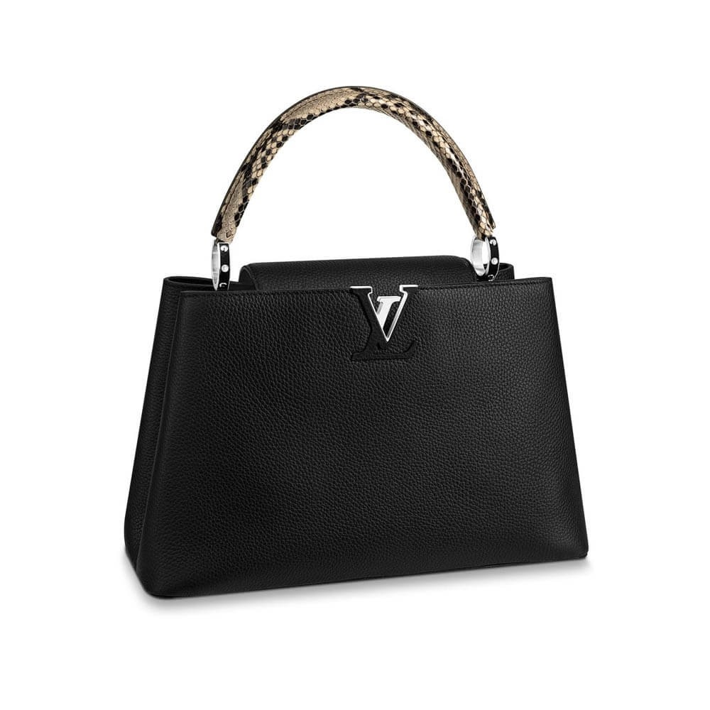 Experience the pinnacle of craftsmanship with this exquisitely designed top handle bag. Merging the supple texture of full-grain Taurillon leather with the striking, natural pattern of genuine python, this piece is a testament to sophisticated style. Its structured silhouette and luxurious materials offer a chic, polished look suitable for any occasion.