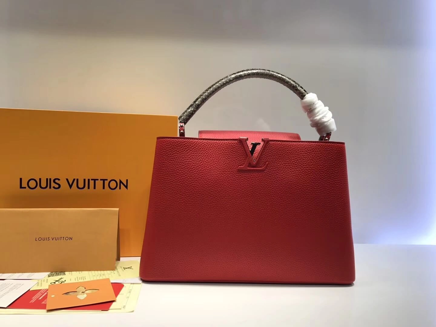 • Exterior: Full-grain Taurillon leather and genuine python