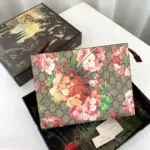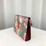 Keep your beauty essentials organized in style with this beautifully crafted large travel pouch. Featuring a vibrant floral bloom print overlaid on a durable, coated canvas with a classic geometric pattern, this case is perfect for home or travel. The spacious interior and practical design make it an elegant solution for storing your toiletries and cosmetics.