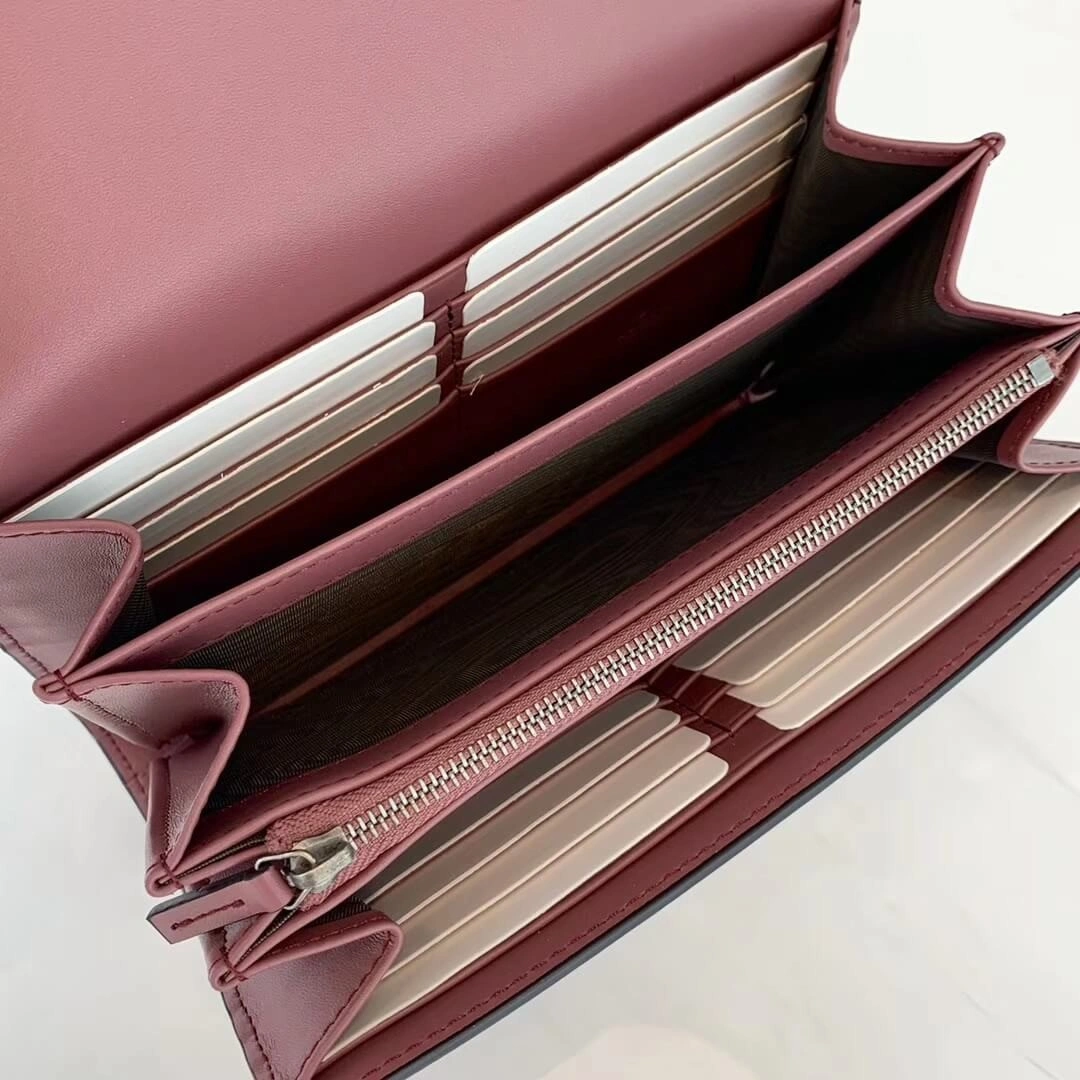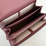 The interior is thoughtfully organized to keep your essentials in order. Lined with smooth leather, it features multiple compartments, numerous card slots, and a secure zip pocket, making it an ideal choice for transitioning from day to night with ease.