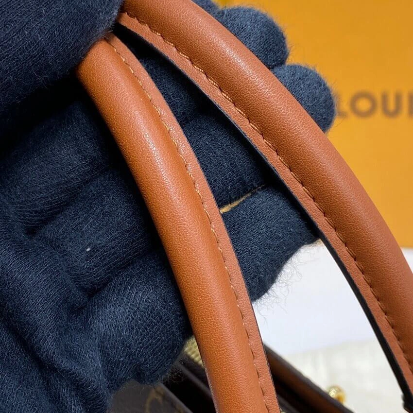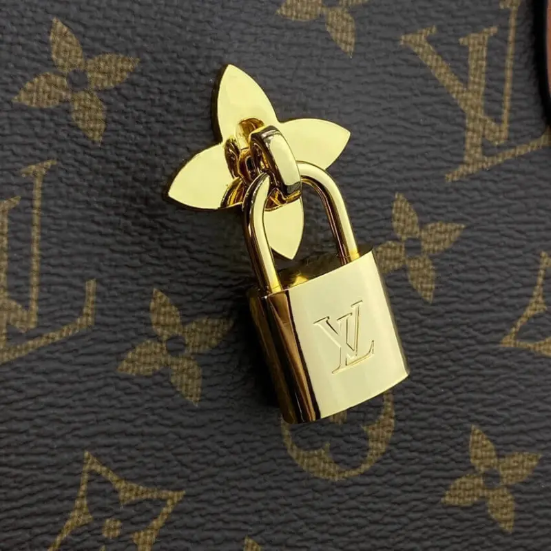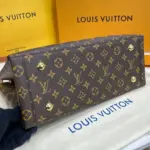 Constructed from a durable coated canvas with a timeless monogram pattern, this bag features smooth leather trim and a soft microfiber lining. The thoughtful design includes a secure central compartment and multiple pockets, making it as practical as it is stylish.