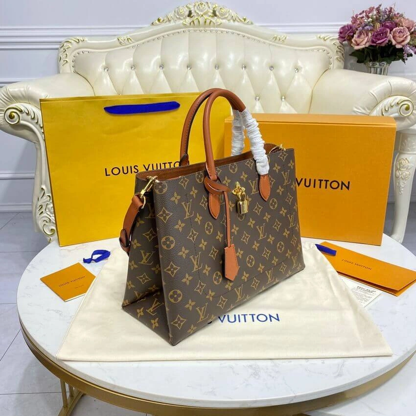 Flower Detail Monogram Print Canvas Tote Bag Caramel M43770