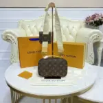 Designed for the modern, on-the-go lifestyle, this sporty and functional crossbody bag offers exceptional utility and style. Its compact, lightweight form is crafted from a durable coated canvas featuring a timeless geometric pattern, complemented by a top handle and zip pulls in natural leather. Multiple exterior zippered pockets provide instant access to your essentials, making it the perfect companion for daily errands or travel.