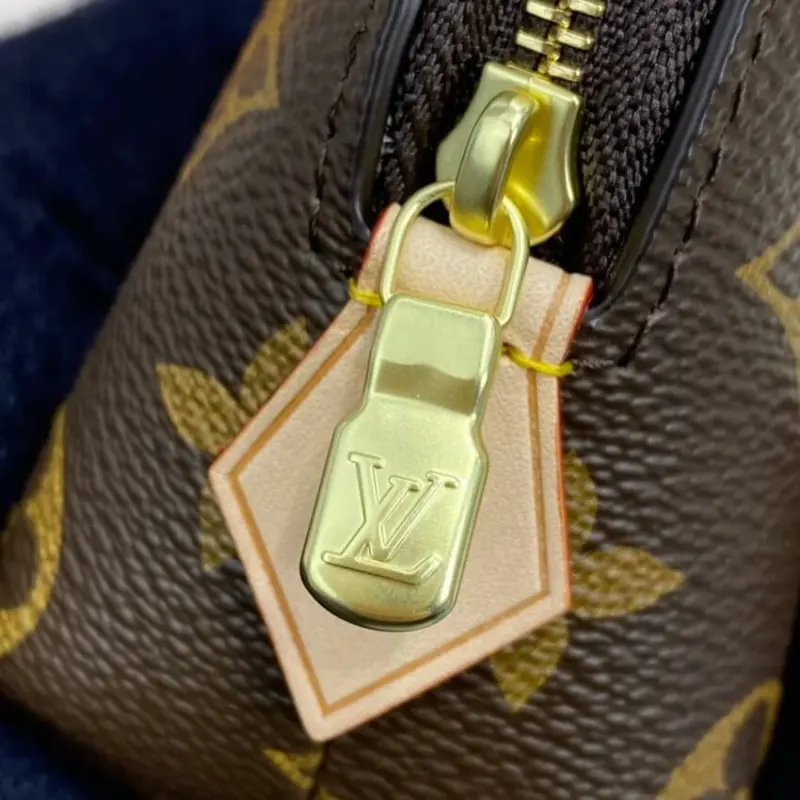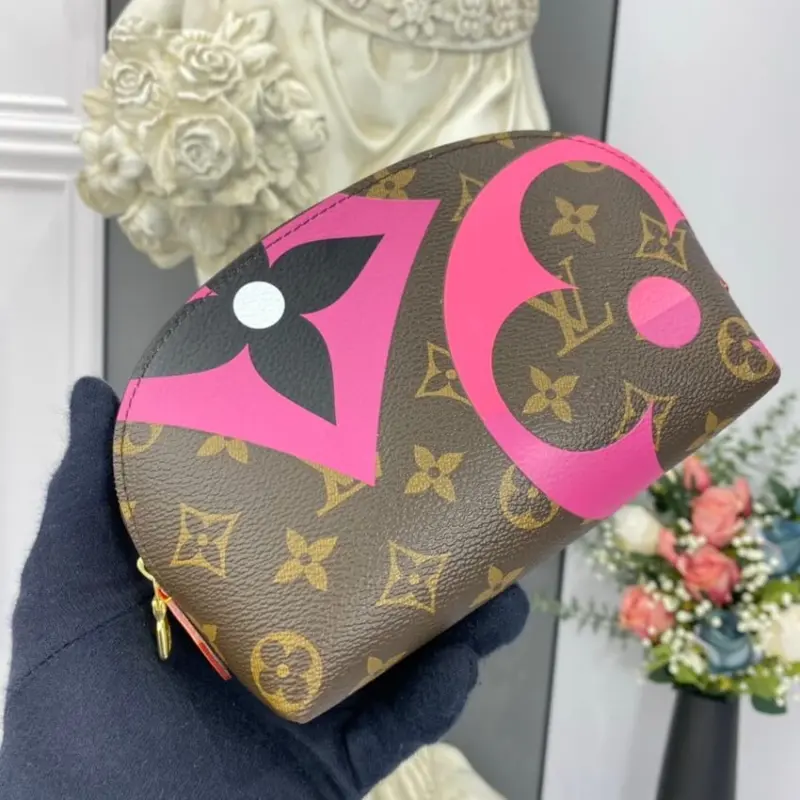 This pouch is elegantly detailed with natural cowhide-leather trim and polished gold-tone hardware, adding a touch of classic refinement to its whimsical design. Inside, a washable textile lining ensures practicality and easy maintenance, while a convenient patch pocket helps keep smaller items neatly in place. A smooth, rounded zip closure secures your belongings in style.