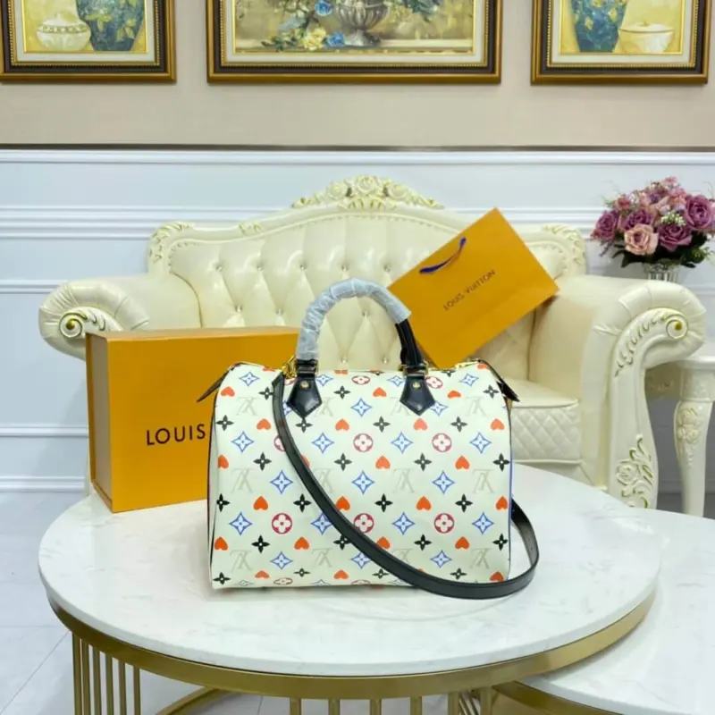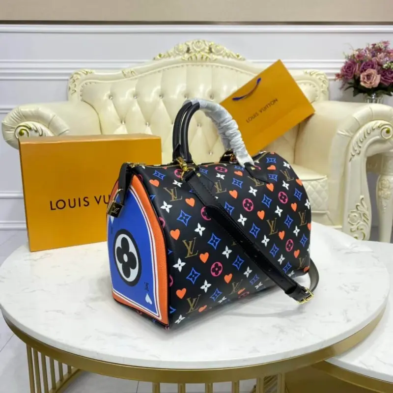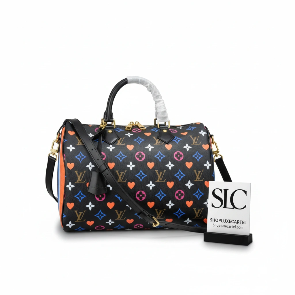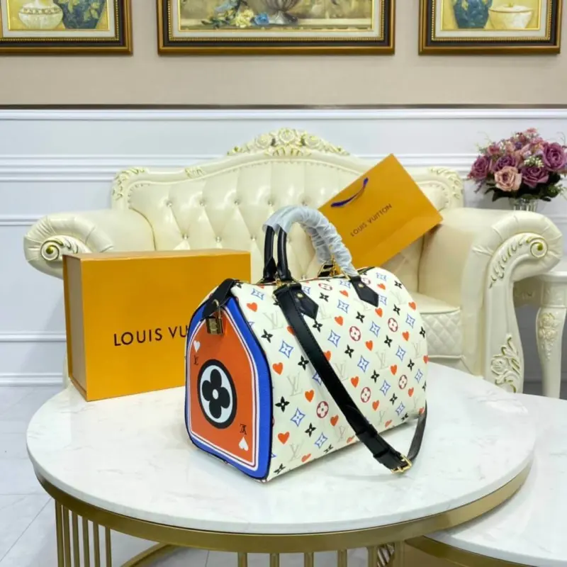 Discover a playful and artistic take on a classic Boston bag silhouette. This travel bag is crafted from durable coated canvas, featuring a bold and bright print inspired by the world of playing cards. The imaginative design delivers exceptional style, while its versatile and timeless shape makes it a perfect companion for both everyday errands and weekend getaways.