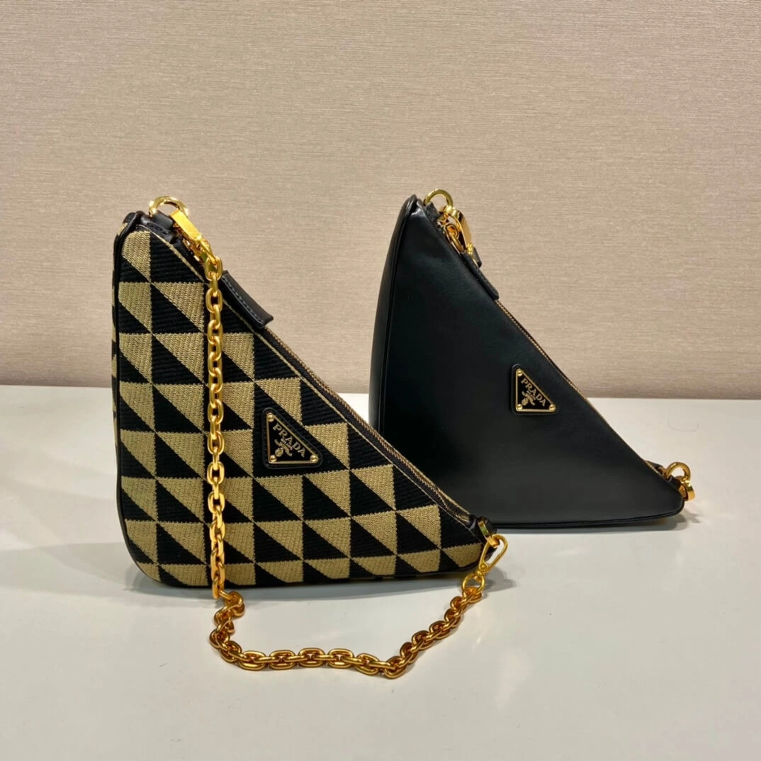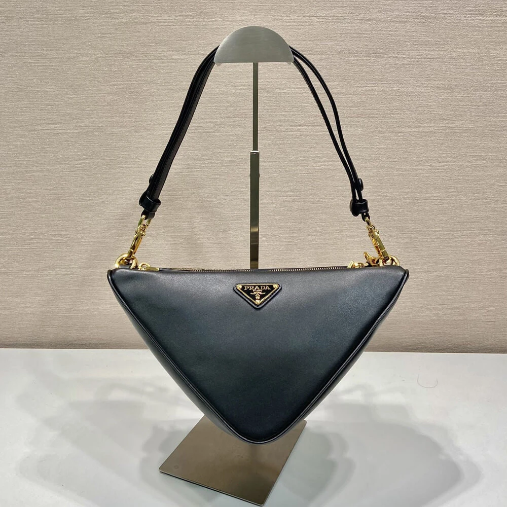 The clever construction consists of two distinct triangular elements that can be separated and used individually. Wear it as a complete handbag, detach one section to create a smaller purse, or remove the handles to carry them as chic clutches. This adaptable piece effortlessly transitions from day to night, complementing any modern wardrobe.