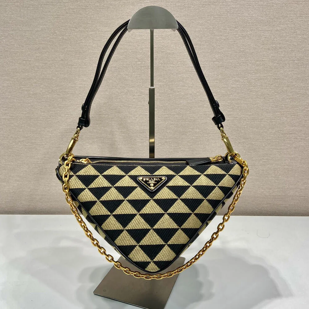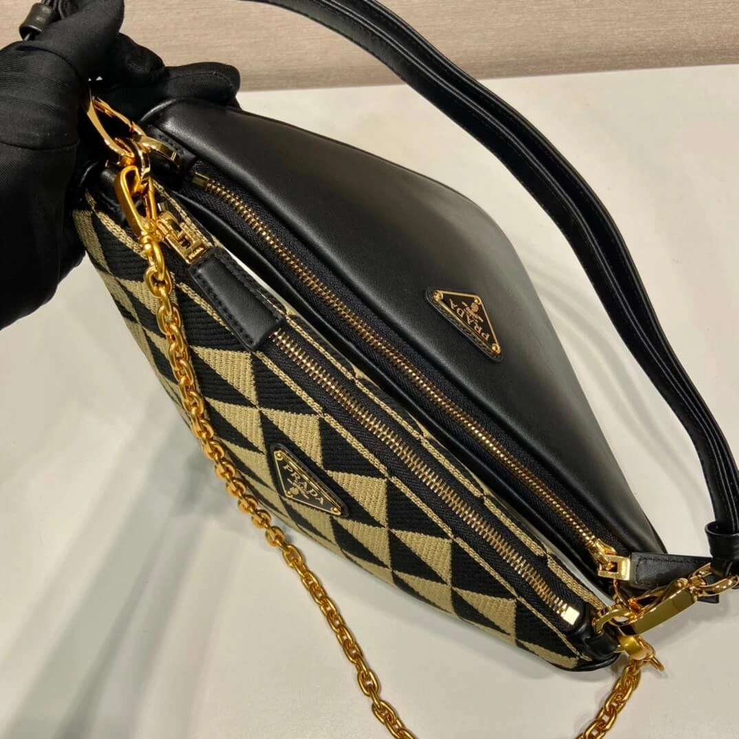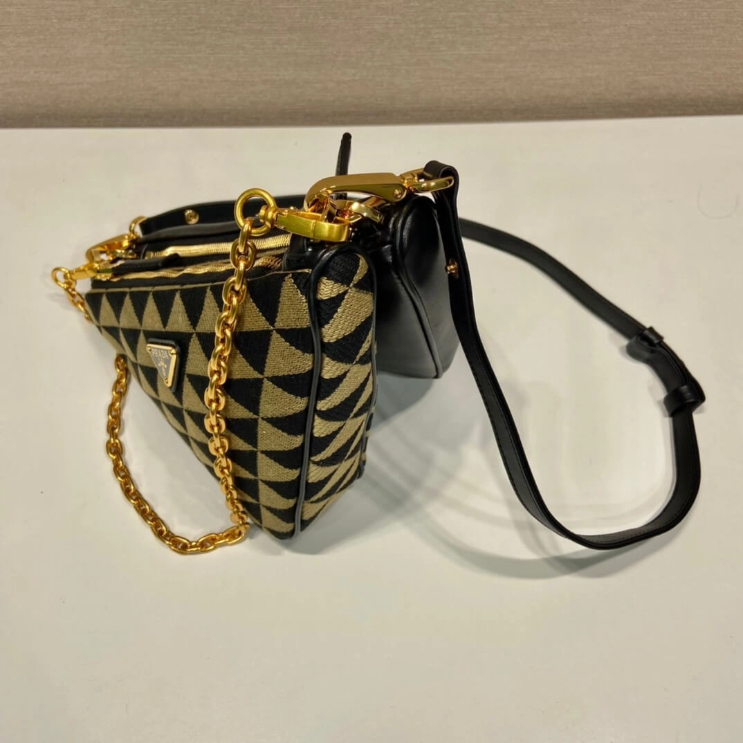 Geometric Pattern Fabric and Leather Mini Bag 1BC176