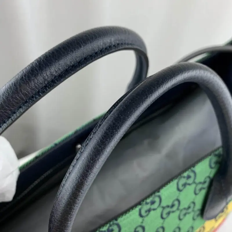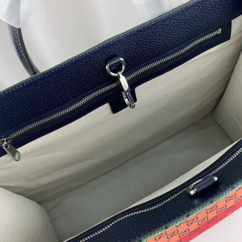 Contrasting leather trim adds a touch of classic elegance, while the thoughtfully designed interior helps keep your essentials organized and secure. This tote is crafted to be a both fashionable and functional companion, ready to elevate any outfit.