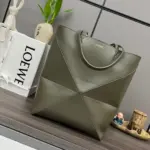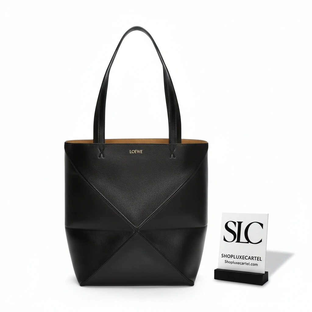 Geometric Puzzle Fold Convertible Medium Leather Tote Bag