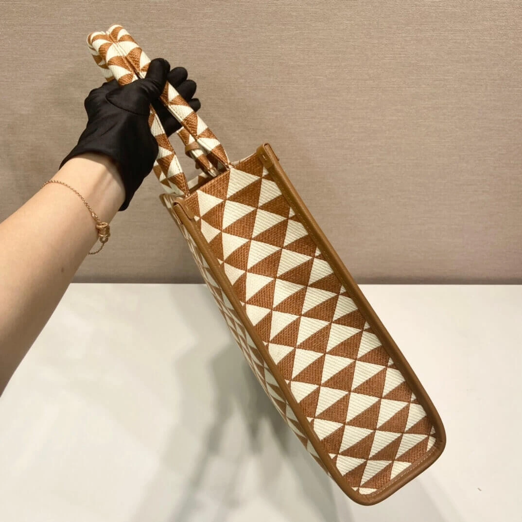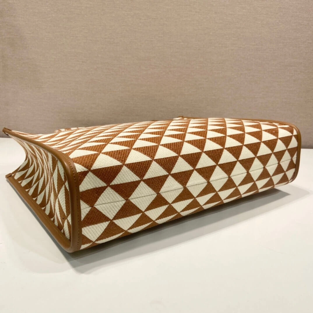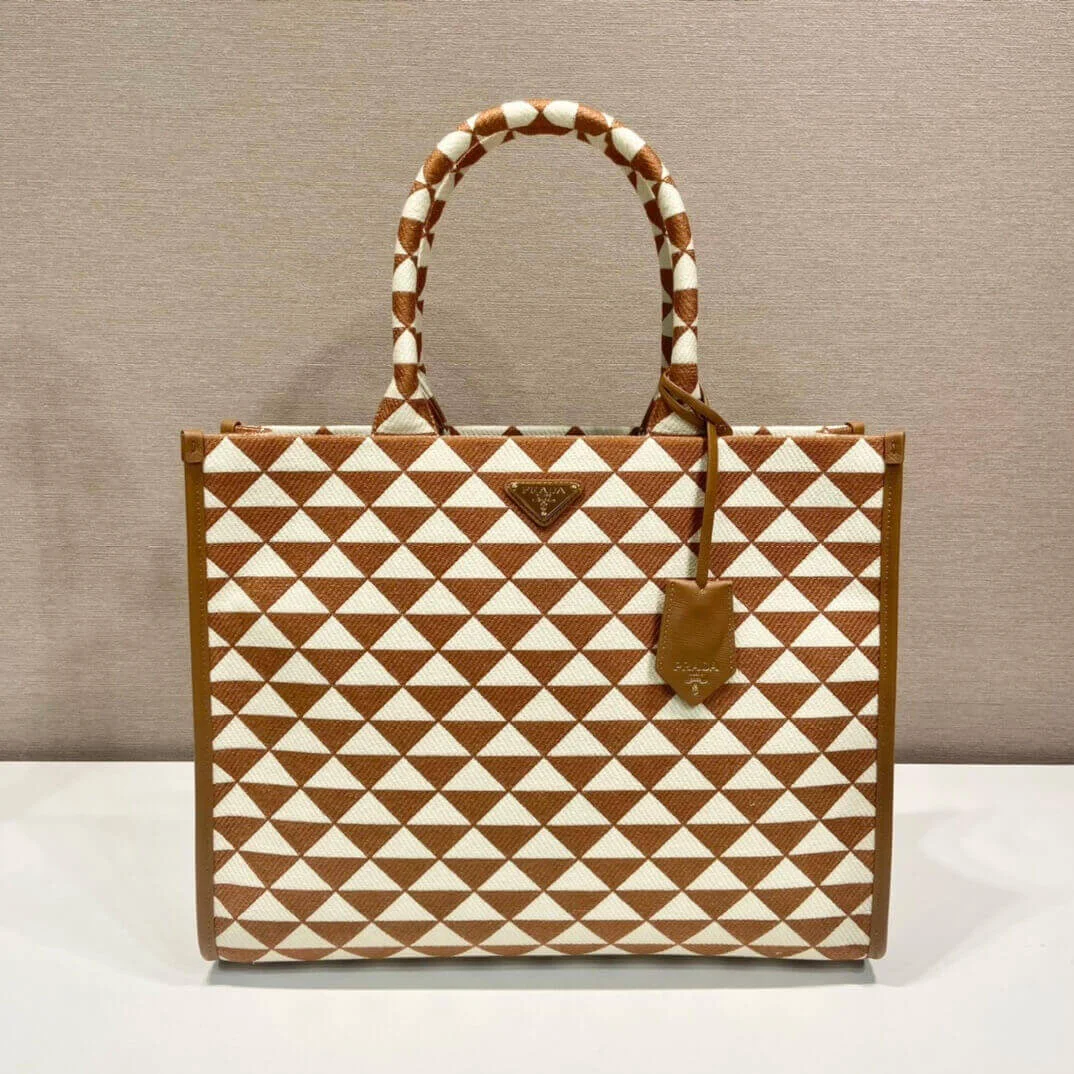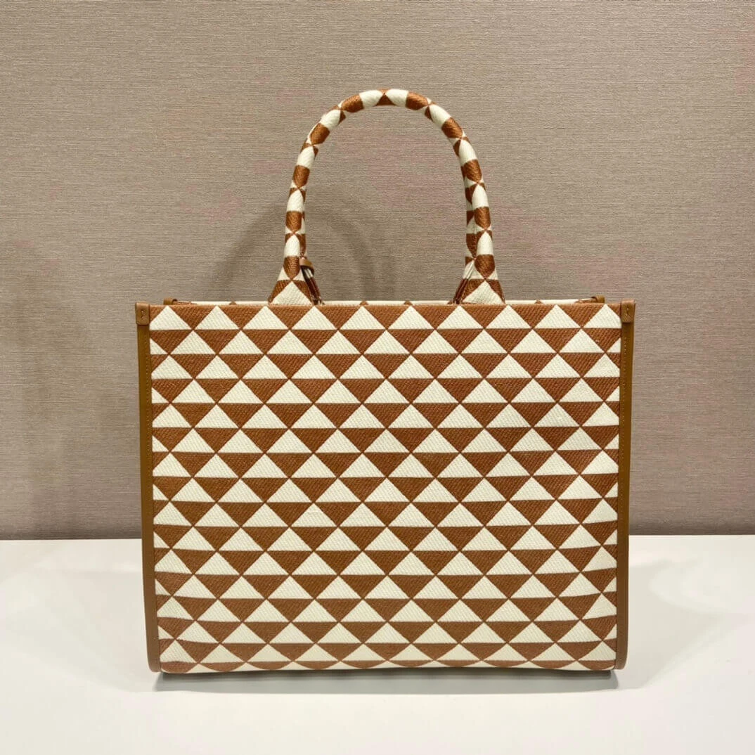 Showcasing a unique and modern aesthetic, this tote bag is defined by its striking geometric pattern. The all-over embroidered motif creates a sophisticated, high-contrast design that adds a contemporary edge to any ensemble. Crafted from high-quality fabric, this handbag combines a sleek silhouette with refined, durable materials for a truly polished look.