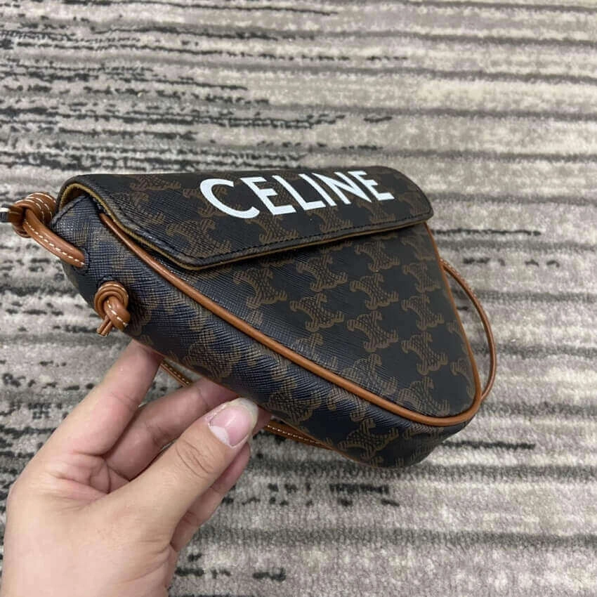 Geometric Triangle Shoulder Bag with Monogram Print Canvas 195902