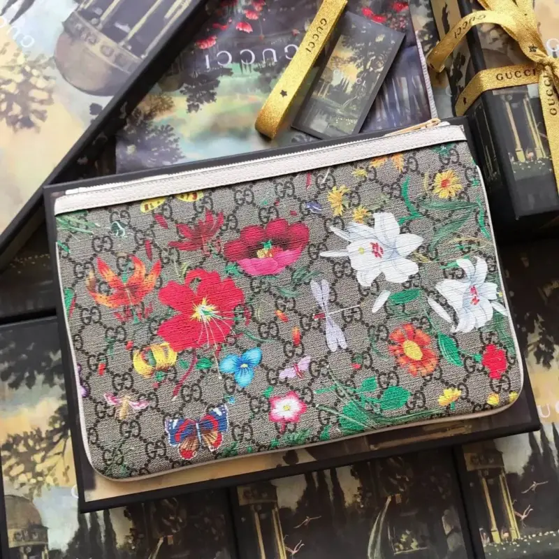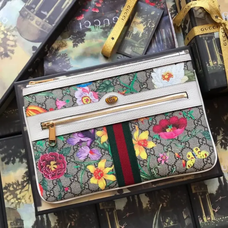 GG Flora Print Ophidia Style Travel Pouch 517551