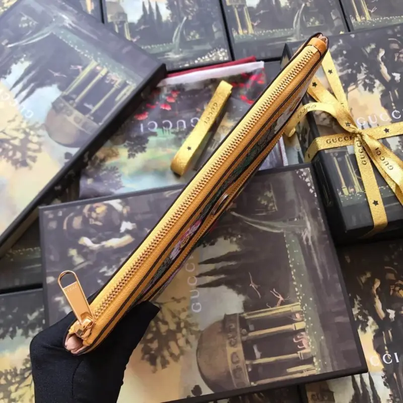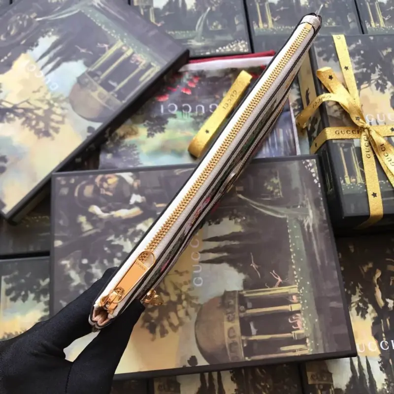Crafted for both beauty and durability, this zip pouch is constructed from a durable coated canvas. The shiny gold-toned hardware adds a touch of polished sophistication, complementing the colorful design. Inside, a soft microfiber lining with a suede-like finish protects your valuables, while a convenient front zipper pocket keeps important items within easy reach. This piece seamlessly combines high fashion with practical functionality.