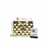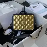 Gold Quilted Cosmetic Vanity Case in Lambskin Leather AS2900